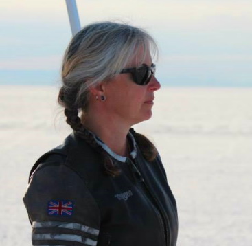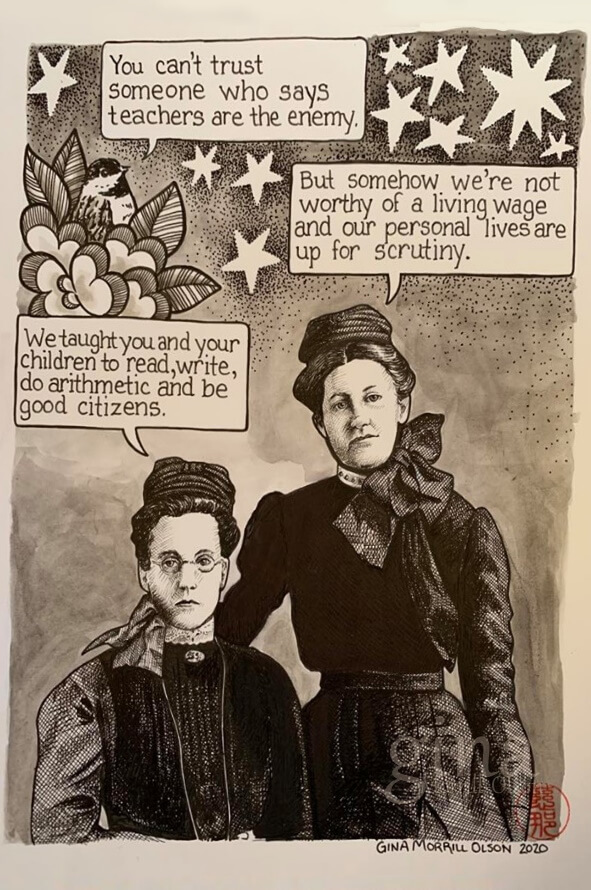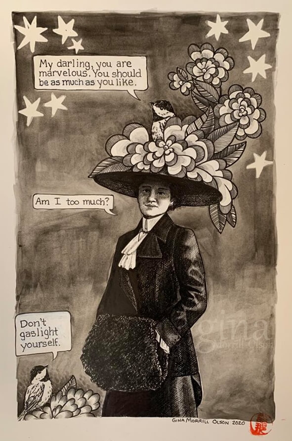 Gina Morrill-Olson created this collage art, which she calls Determined Rider, using acrylic paint on a wood panel.